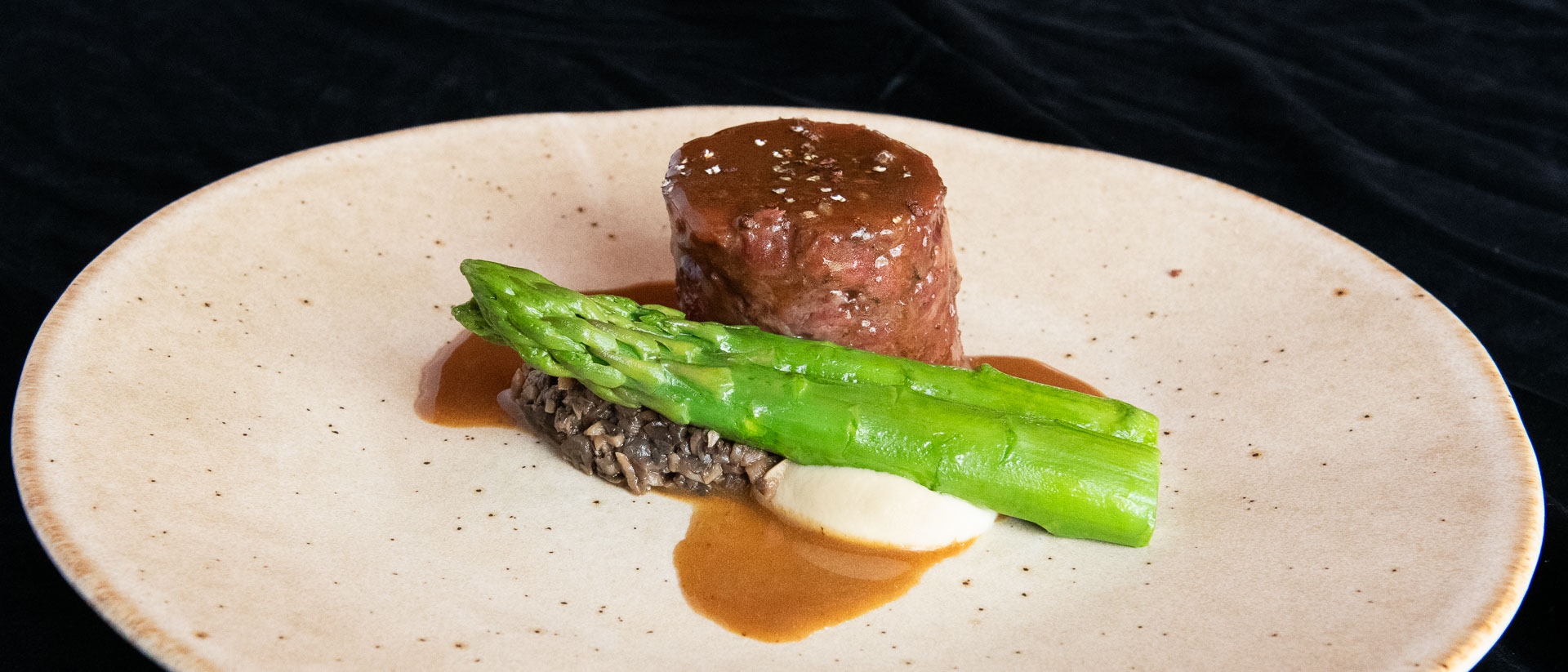 - Ossenstaart van de bbq met jus van rund, blauwe kaas, knolselderijcrème en lavas