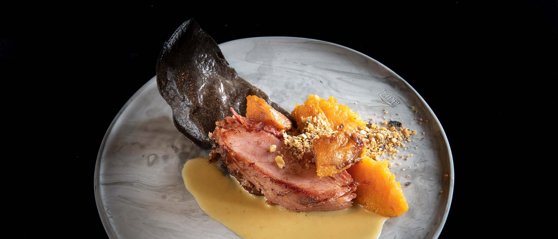 Coquille met truffelvinaigrette, cèpes-pastinaakpannacotta en hazelnoot