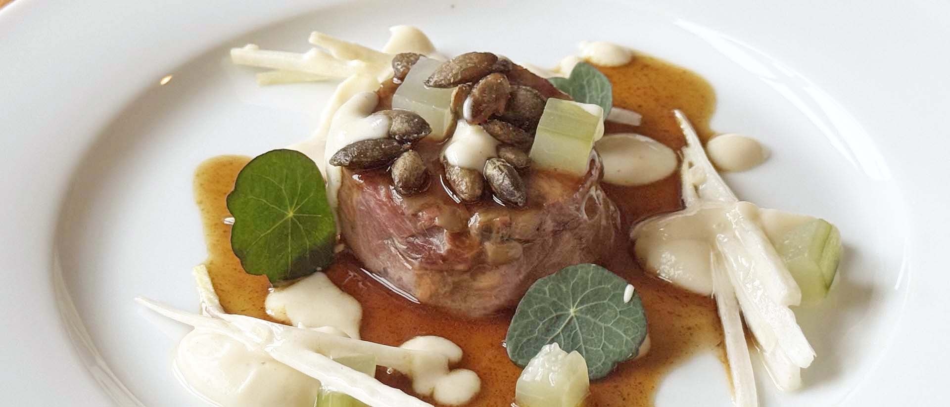 Kalfssukade met gevulde morilles en Chantenay wortel