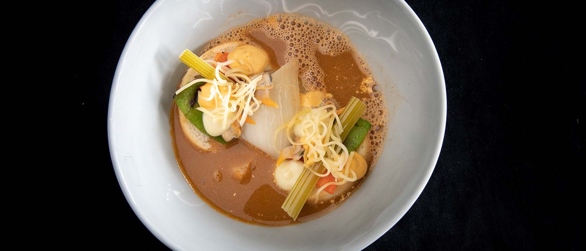 Kromme watergang** - Zeeuwse vissoep, poon, kokkels, croutons, rouille en venkel