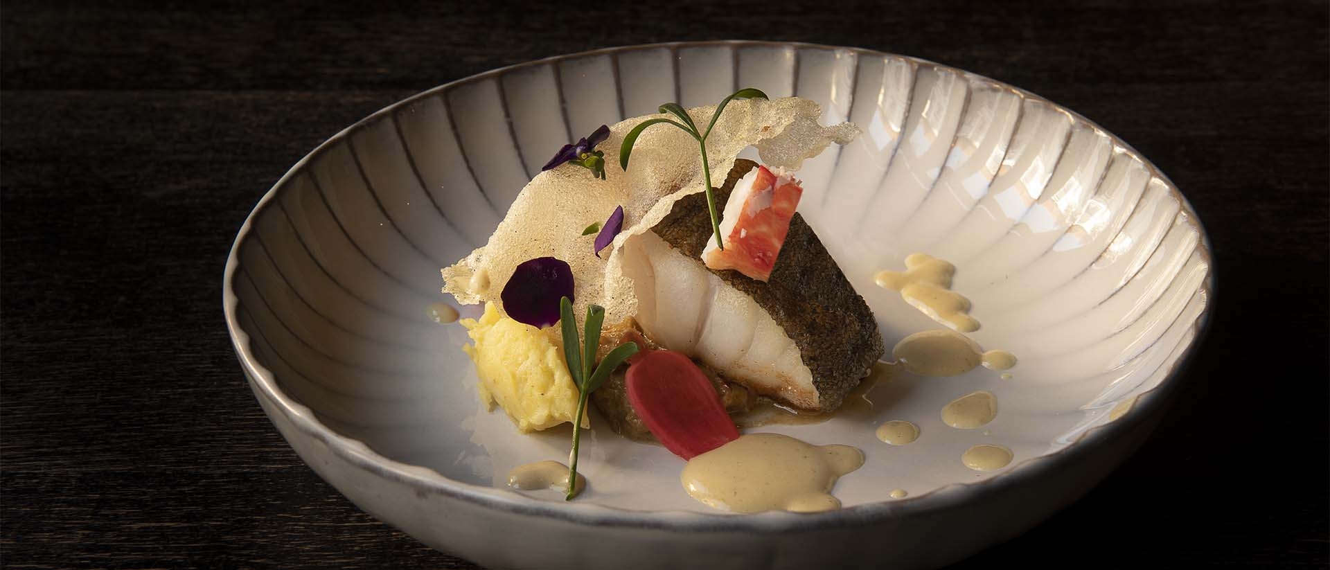 - Kabeljauw met kreeft, rendang van spitskool en saus van kokos en sereh